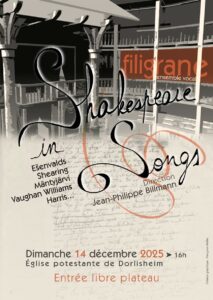 Filigrane vous propose de plonger dans les vers et l’univers d’un des plus grands poètes de tous les temps: William Shakespeare. Avec sa plume forte et raffinée, il vient nous conter des histoires convoquant toute la passion que l’être humain est capable de ressentir et d’exprimer. C’est tout naturellement que ses vers, déclamés de manière quasi prophétique dans son « globe » ont résonné par-delà le globe terrestre et ont été mis en musique par des compositeurs du monde entier.…