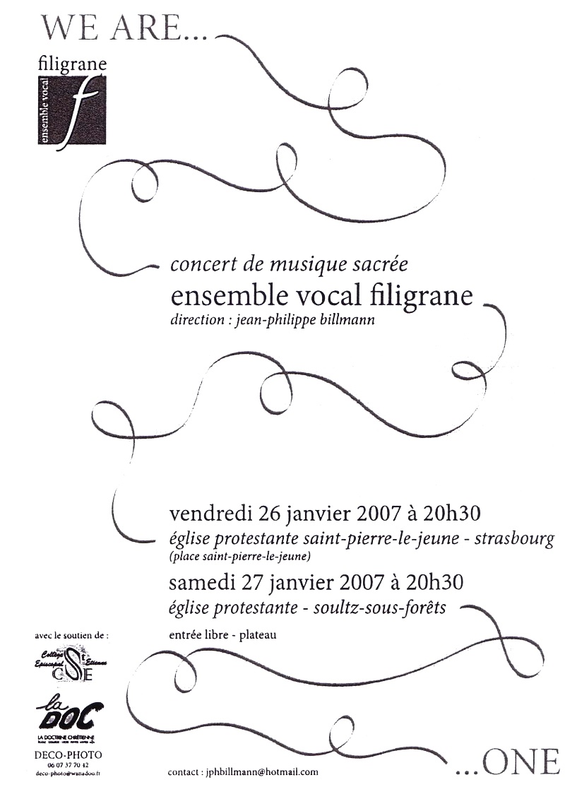We are... one Concerts Samedi 26 janvier 2007 Église protestante Saint-Pierre le jeune de Strasbourg Dimanche 27 janvier 2007 Église protestante de Soultz-sous-forêts